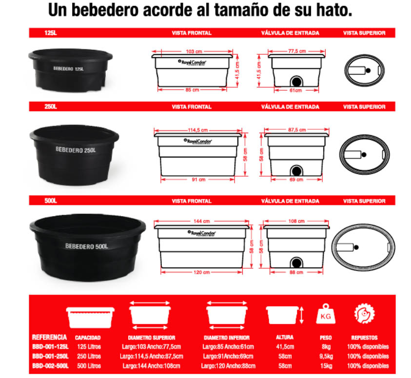 El Bebedero RoyalCondor se diseñó para llegar al ganadero con una solución completa de bienestar animal, que logre cumplir las exigencias de un bebedero para ganado lechero y/o cárnico.