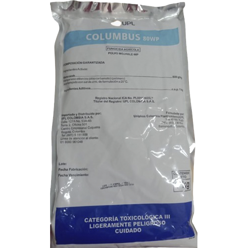 Fungicida a base del ingrediente activo mancozeb para empelarse en forma de aspersión para el control de enfermedades fungosas de las plantas. COLUMBUS 80 WP tiene propiedades adherentes en las plantas y alto poder fungicida e amplio espectro con acción protectante de contacto.
